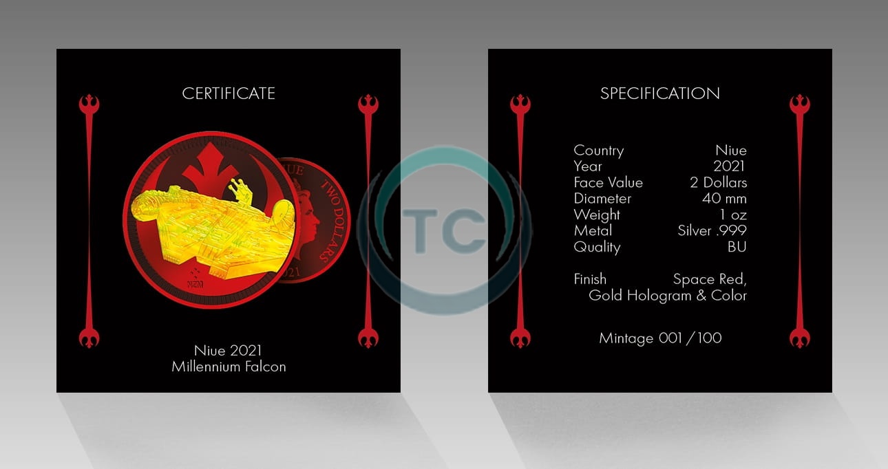 2021 Niue 2$ Star Wars Millennium Falcon Space Red box