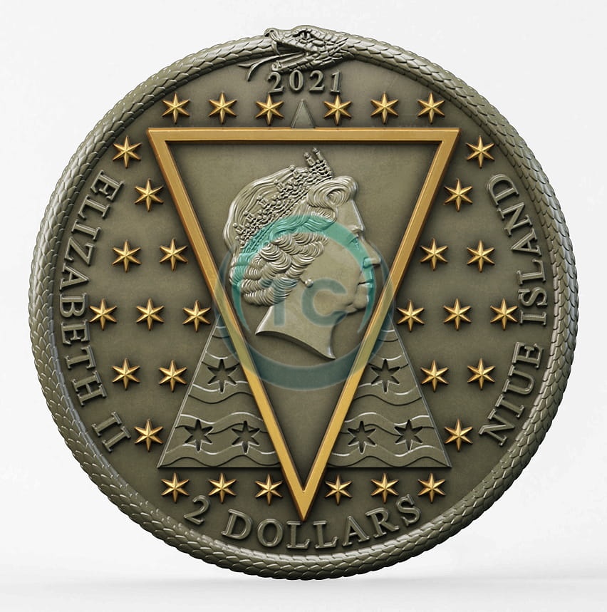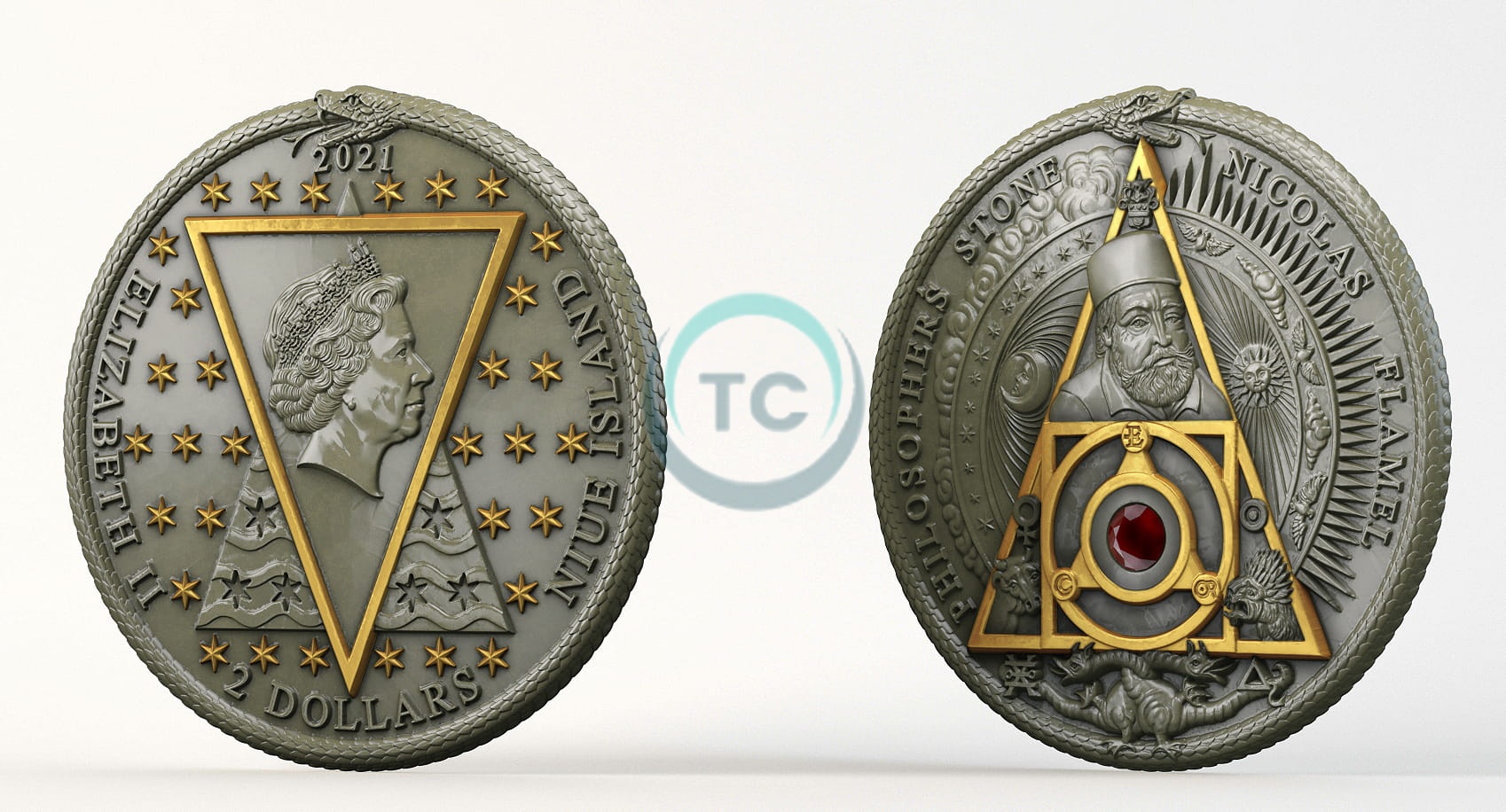 2021 Niue Island 2$ Golden Philosopher's Stone - Nicolas Flamel