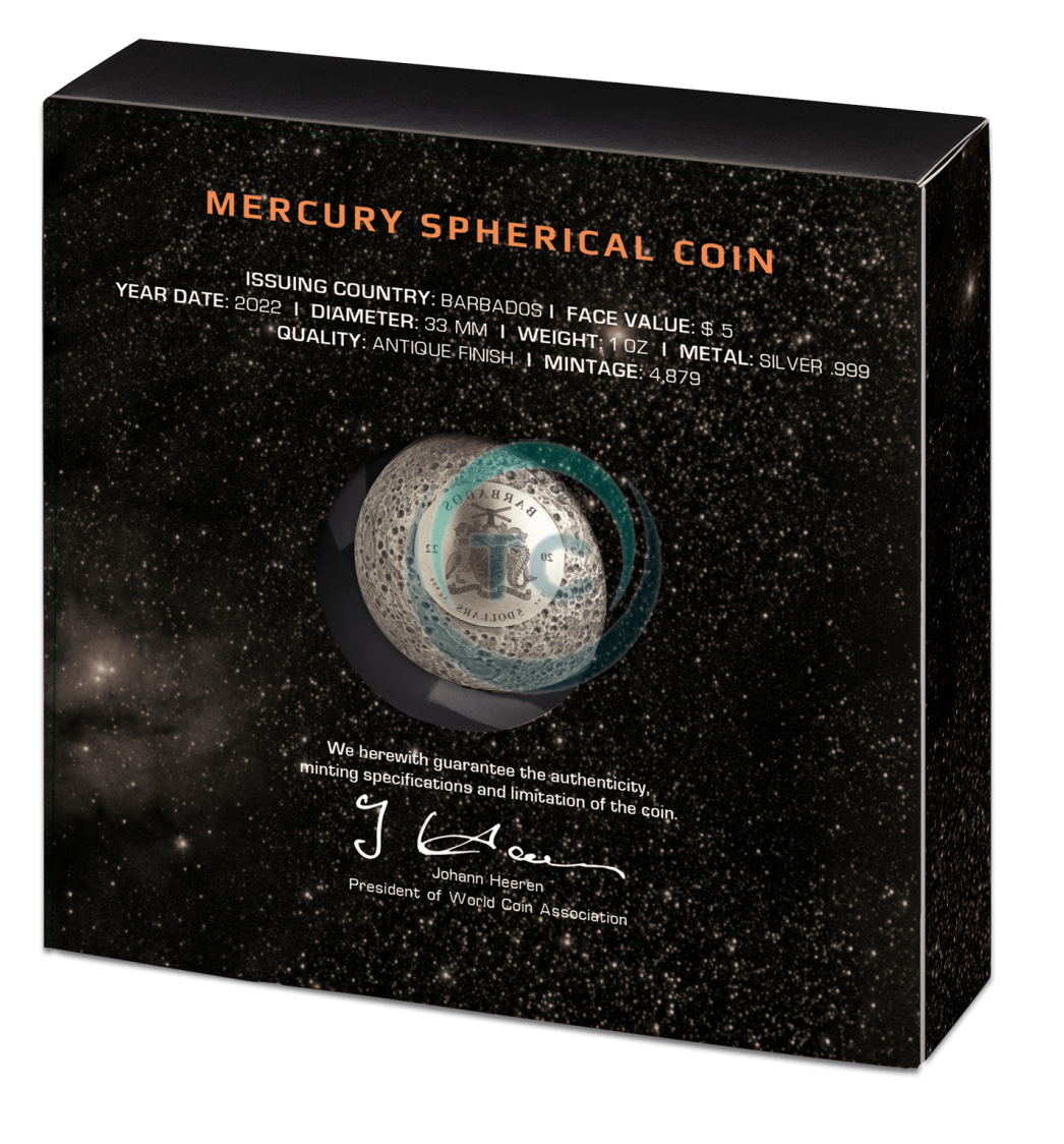 2022 Barbados 5$ Spherical Mercury 3D Planet