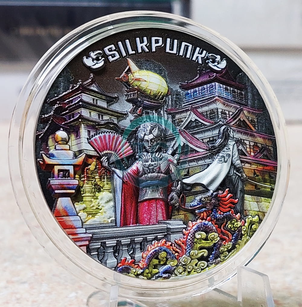 Silkpunk to nie tylko gatunek — to portal do niezbadanych królestw, w których wyobraźnia nie zna granic. Monety z kolekcji służą jako wrota do tych królestw, zapraszając kolekcjonerów do wyobrażenia sobie historii o statkach powietrznych płynących po lazurowym niebie, ożywionych zegarowych cudach i kulturach przeszłości objętych technologią przyszłości. Te monety to coś więcej niż przedmioty kolekcjonerskie; są naczyniami do opowiadania historii.