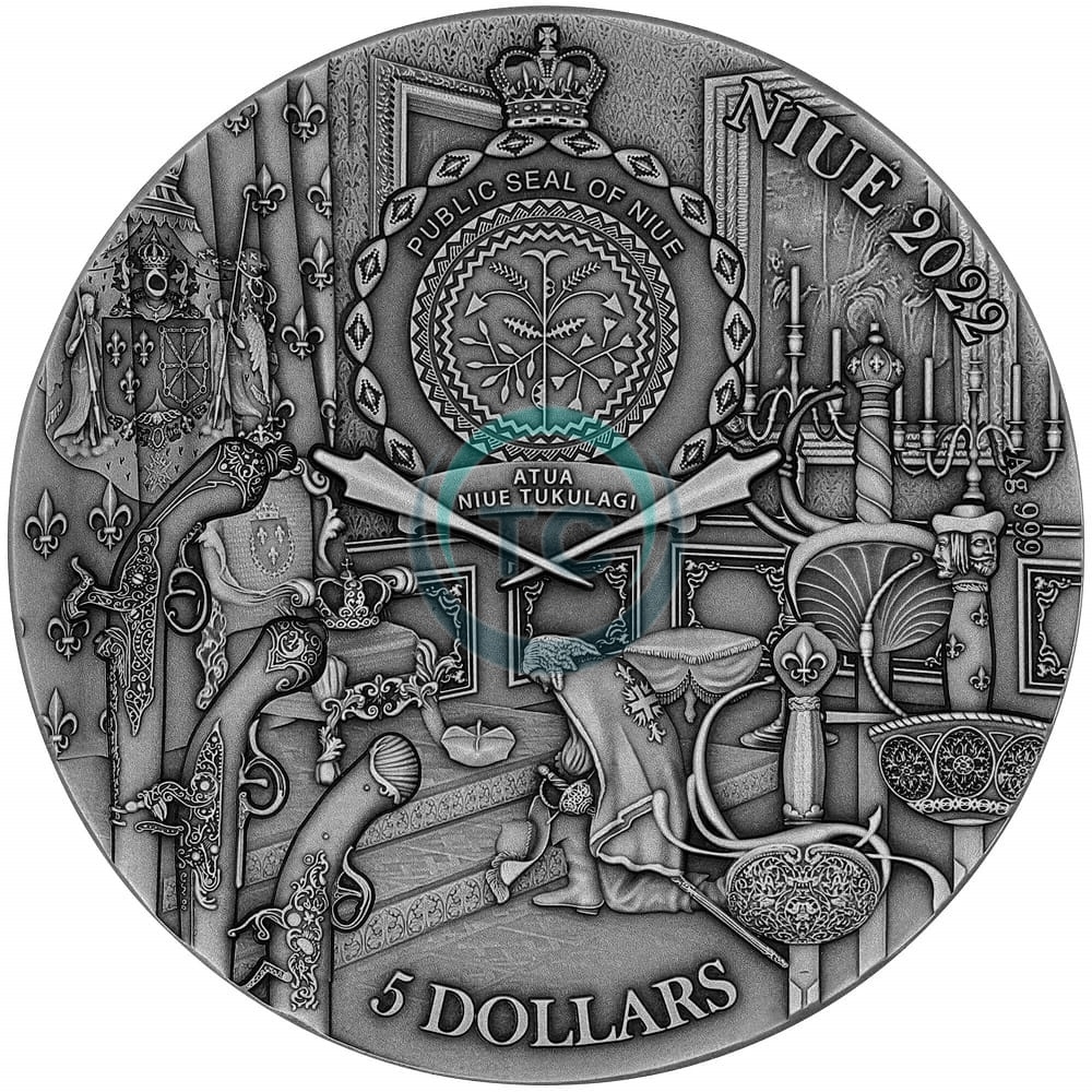 Moneta 2022 Niue Trzej Muszkieterowie D'Artagnan jest wybita z dwóch uncji srebra próby 999, co zapewnia jej czystość i zawartość metali szlachetnych. To wysokiej jakości srebro poprawia atrakcyjność wizualną monety i zwiększa jej naturalną wartość. Duża waga monety sprawia wrażenie solidnej, dodatkowo podkreślając jej znaczenie jako przedmiotu kolekcjonerskiego.