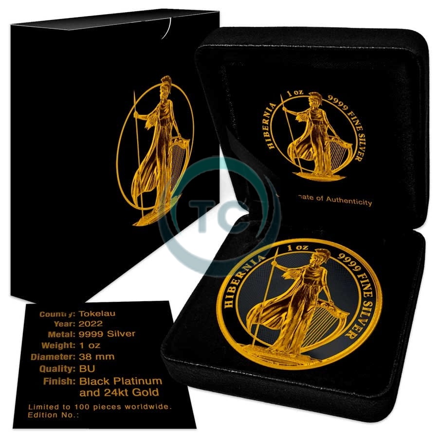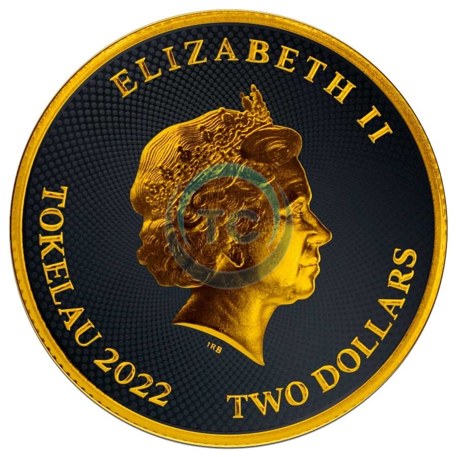2022 Tokelau 2$ Hibernia Black Platinum 24k Gold Gilded