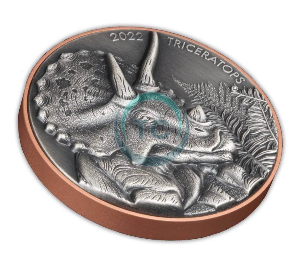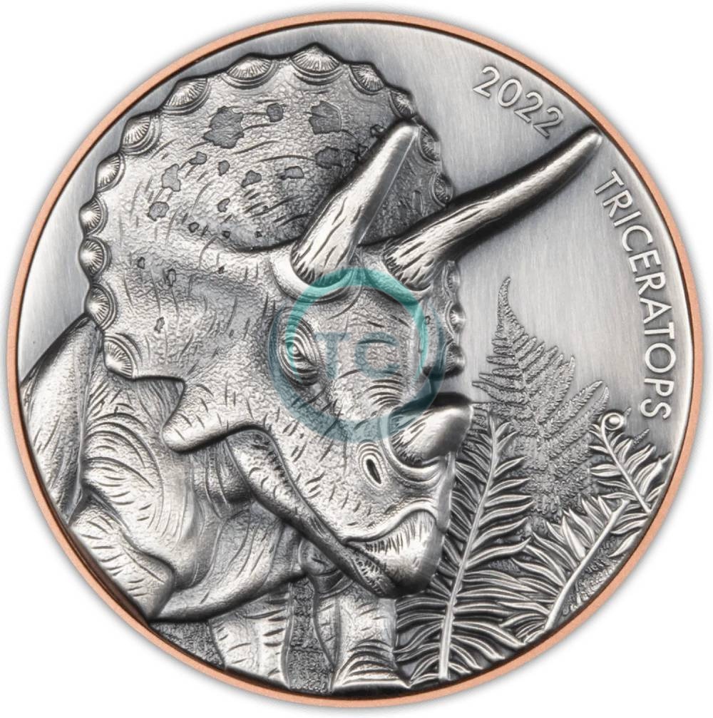2022 Vanuatu 10 Vatu Triceratops Bi Metal Dinosaurs