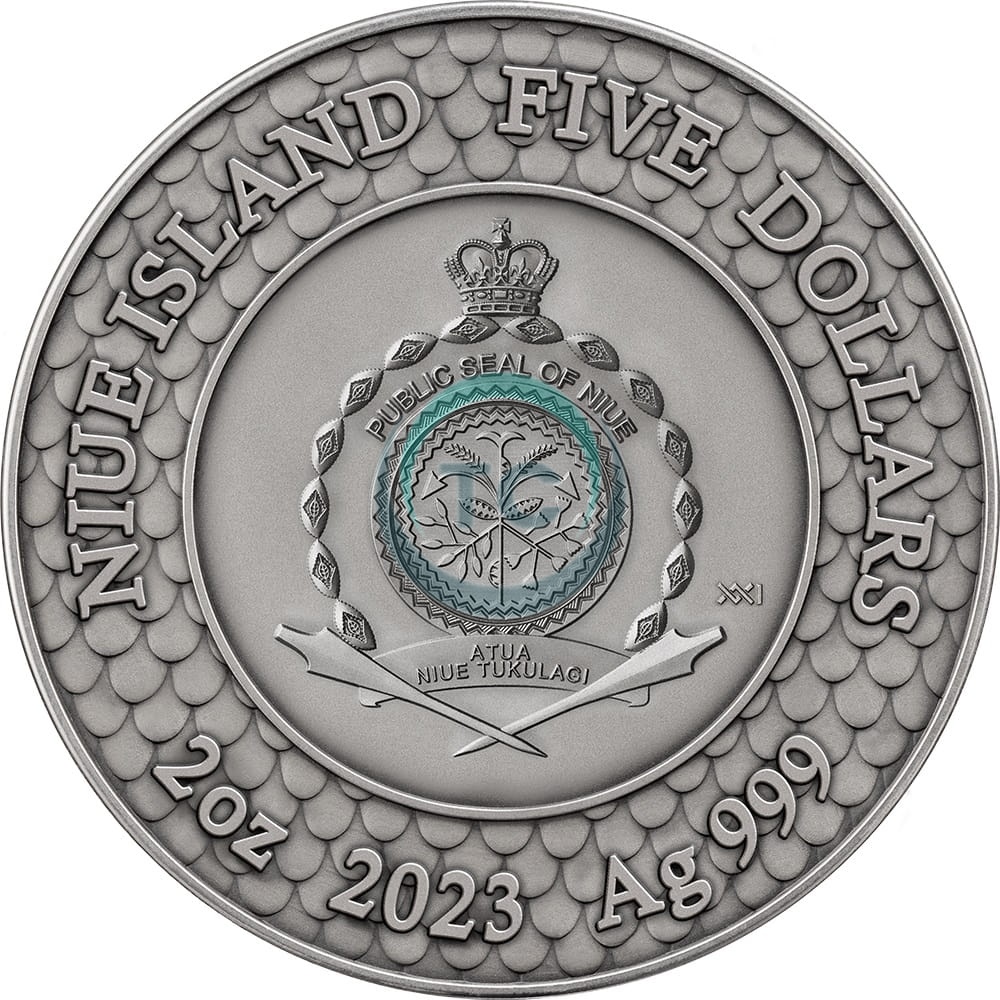 2023 Niue 5$ Boskie Perły - Czarna Perła i Smok