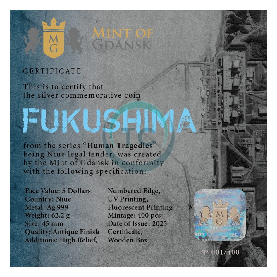 Zamów swoją monety kolekcjonerską Ludzkie Tragedie - Fukushima 2oz i ciesz się jej unikalnym designem oraz wartością inwestycyjną. Idealna na prezent lub jako element wyjątkowej kolekcji.