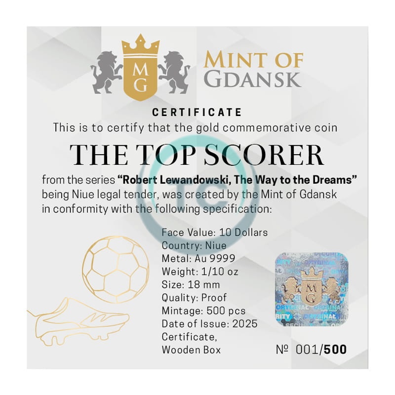 2025 Niue 10$ Robert Lewandowski - Król Strzelców 1/10 Au