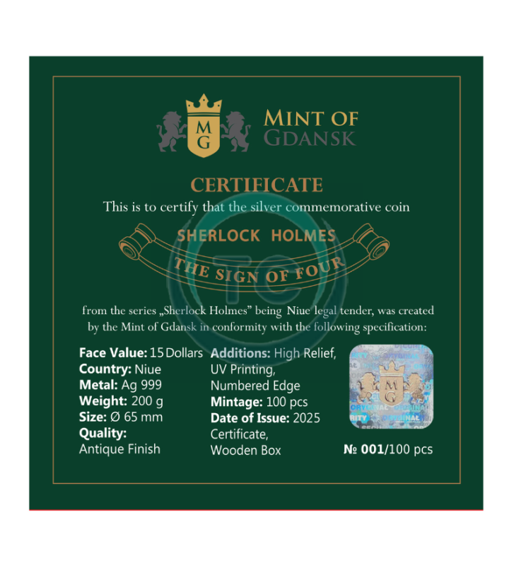 2025 Niue Sherlock Holmes - Znak Czterech 200g