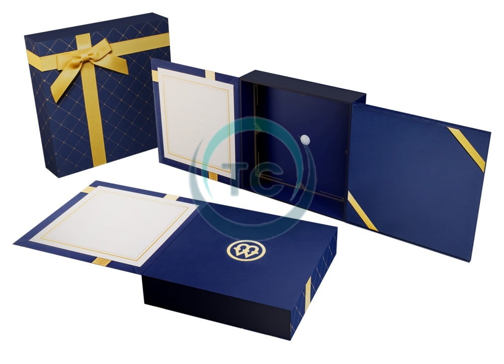 Aksamitna wkładka oraz wstążka z kokardą nadają pudełku wyjątkowo elegancki charakter.